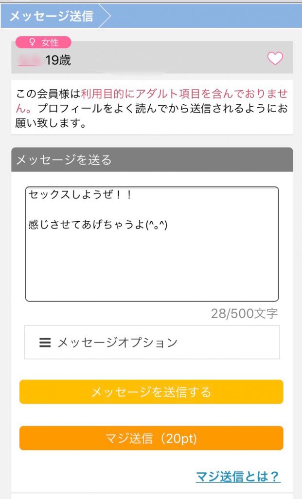 | まずはメッセージから 【飲みにいきましょう!】 【暇なので】 【遊びませんか?】  |
